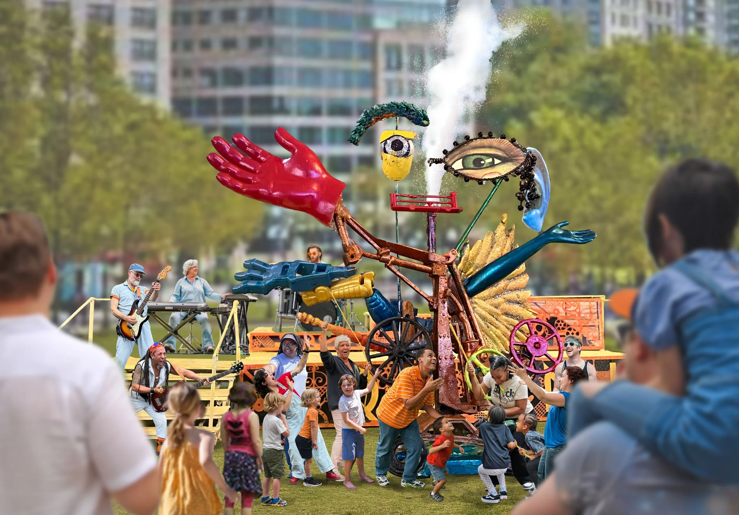 Premiering in June 2026 with The Pittsburgh Cultural Trust, Joy Machine will debut at the grand opening of Arts Landing as part of the Three Rivers Arts Festival. This large-scale music spectacle will transform the public space, inviting audiences to power the performance with their energy – activating this playground of immersive sculptures, fanciful instruments, and kinetic machines alongside Squonk’s raucous live band. It will be both a celebration and an invitation: a shared act of creation, joy, and civic engagement.
