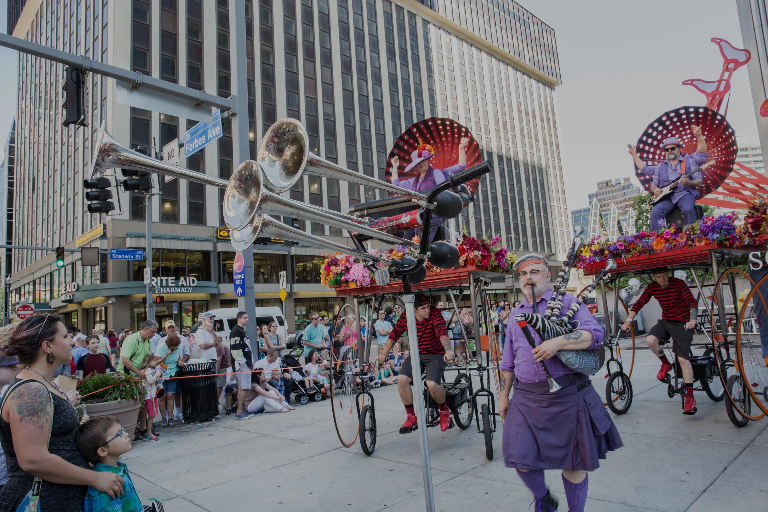 Welcome! Squonk's history includes touring to Europe and Asia, performing Off-Broadway and on Broadway, from Lincoln Center to Stanford University, across 36 of the United States and throughout Canada. We have been awarded scores of grants, including 10 NEA awards. Our outdoor spectacles fuse fantastical visual design, playful staging, and high-energy original music. And we are thrilled to bring joy to public spaces where everyone can celebrate together. A boisterous new participatory piece is in the works, for premiere in 2026.